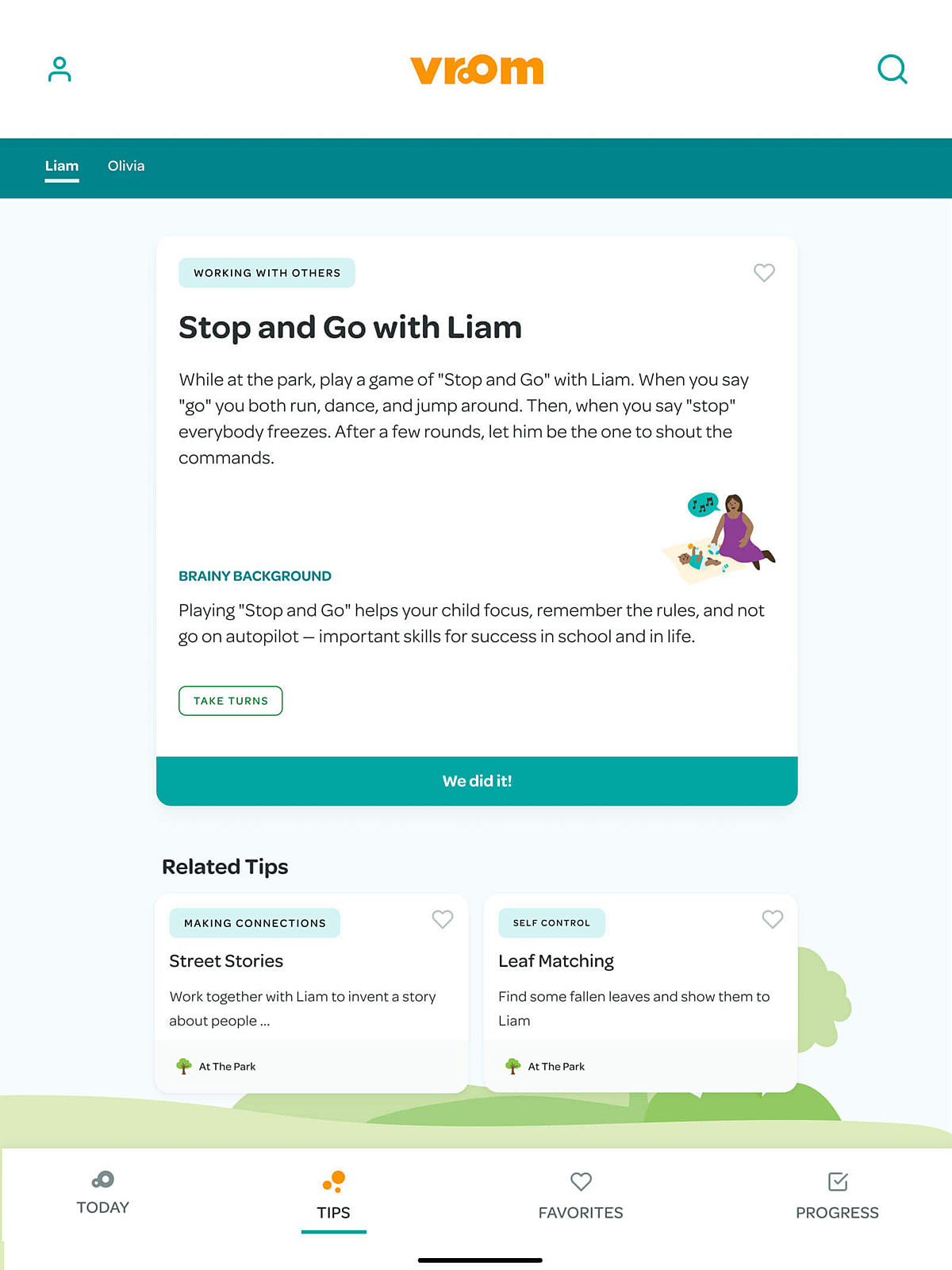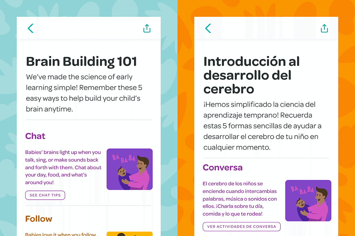 Vroom enjoys a broad, dedicated network of providers who often access Vroom Tips in the app. But the existing app presented barriers to access for caregivers: “Every day at 5pm I get a push notification and if I click on it, it takes me right to the wall where I have to enter the birth month and year. More would get read if I didn’t run into that wall.”