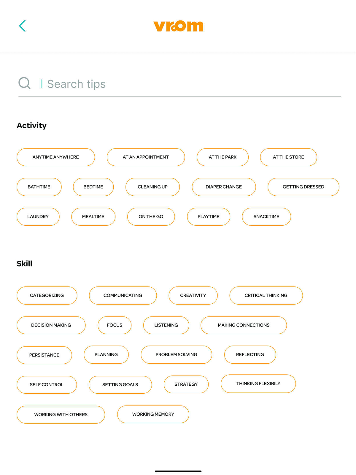 Our research revealed that for a key group of Vroom users — parents — ease of use and access were the biggest barriers to user satisfaction. We activated engagement and retention strategies, and had ongoing discussions with our target end-users, to best advocate for their needs. Early iterations were punctuated by research to test and validate our assumptions, and lean design was key in helping us stay agile and responsive.